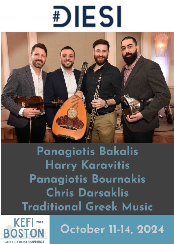 Diesi, a traditional Greek band playing the vast repertoire from all regions of presentday Greece and beyond is based in Montreal and consists of Panagiotis Bakalis (Clarinet, Flute, Tsambouna, Gkainta), Harry Karavitis (Violin, Vocals), Panagiotis Bournakis (Laouto), and Chris Darsaklis (Percussion).